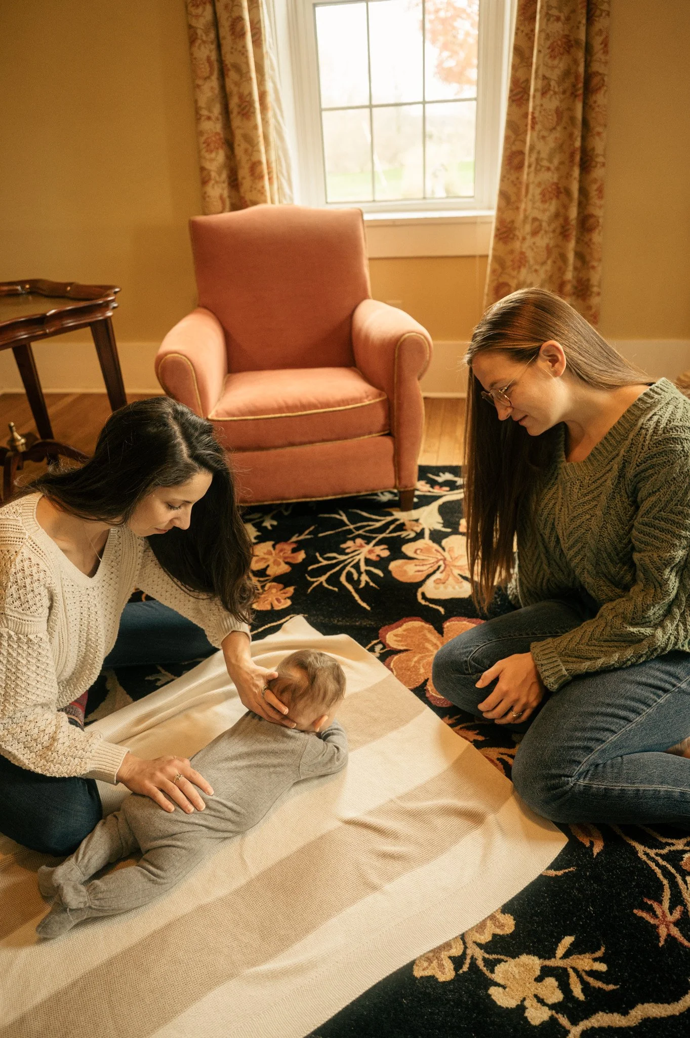 A prenatal educational session that supports parents with insight into infant development, tummy time, milestones, and early breastfeeding knowledge, building a foundation of comfort and confidence.